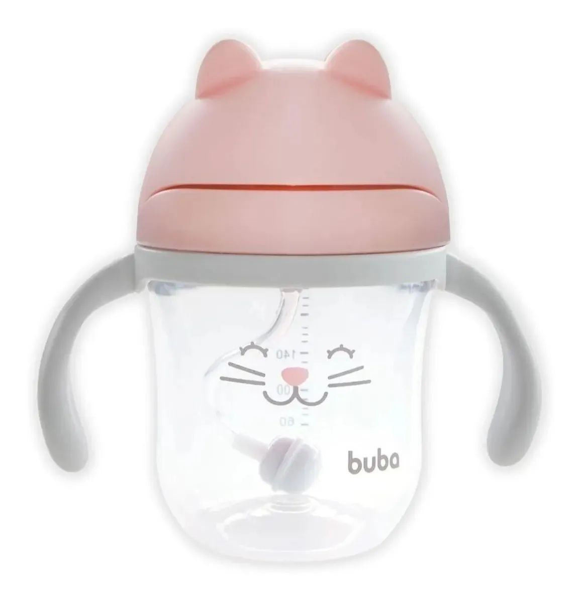 Com estampa fofa de gatinho, esse copo possui válvula que acompanha o líquido, evitando a ingestão de ar e consequente mal estar no bebê.